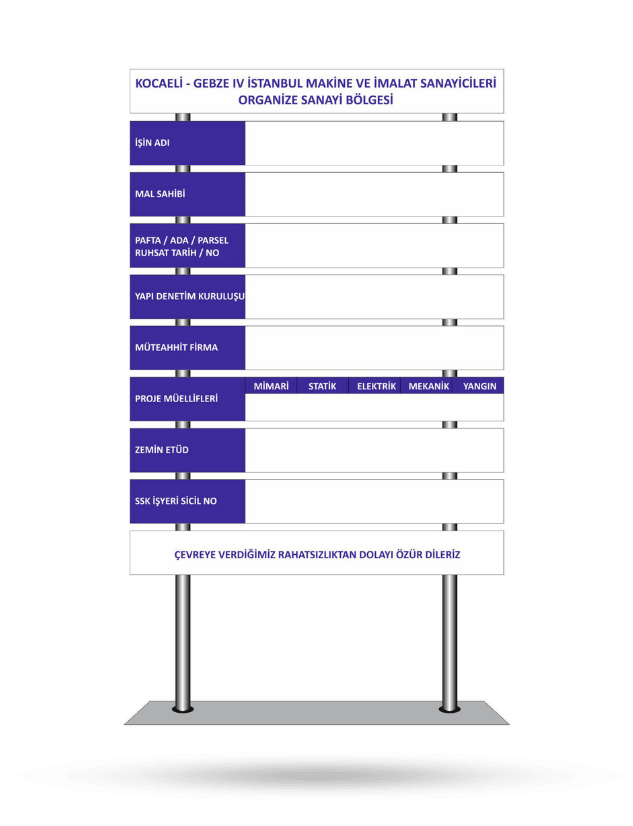 Firmanıza özel şantiye levhaları için bizimle iletişime geçin.